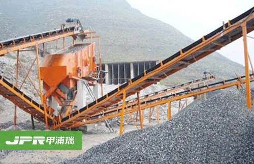 碎石生產(chǎn)線主要由振動(dòng)給料機(jī)、顎式破碎機(jī)、反擊式破碎機(jī)、振動(dòng)篩、膠帶輸送機(jī)、集中電控等設(shè)備組成。為滿足客戶不同的加工需要,可配備圓錐式破碎機(jī)、除塵 設(shè)備等。大塊石料經(jīng)料倉由振動(dòng)給料機(jī)均勻地送進(jìn)鄂式破碎機(jī)進(jìn)行粗碎,粗碎后的石料由膠帶輸送機(jī)送到反擊式破碎機(jī)進(jìn)行進(jìn)一步破碎;細(xì)碎后的石料由膠帶輸送機(jī) 送進(jìn)振動(dòng)篩進(jìn)行篩分,篩分出幾種不同規(guī)格的石子,滿足粒度要求的石子由成品膠帶輸送機(jī)送往成品料堆;不滿足粒度要求的石子由膠帶輸送機(jī)返料送到反擊式破碎 機(jī)進(jìn)行再次破碎,形成閉路多次循環(huán)。成品粒度可按照用戶的需求進(jìn)行組合和分級(jí),為保護(hù)環(huán)境,可配備輔助的除塵設(shè)備。